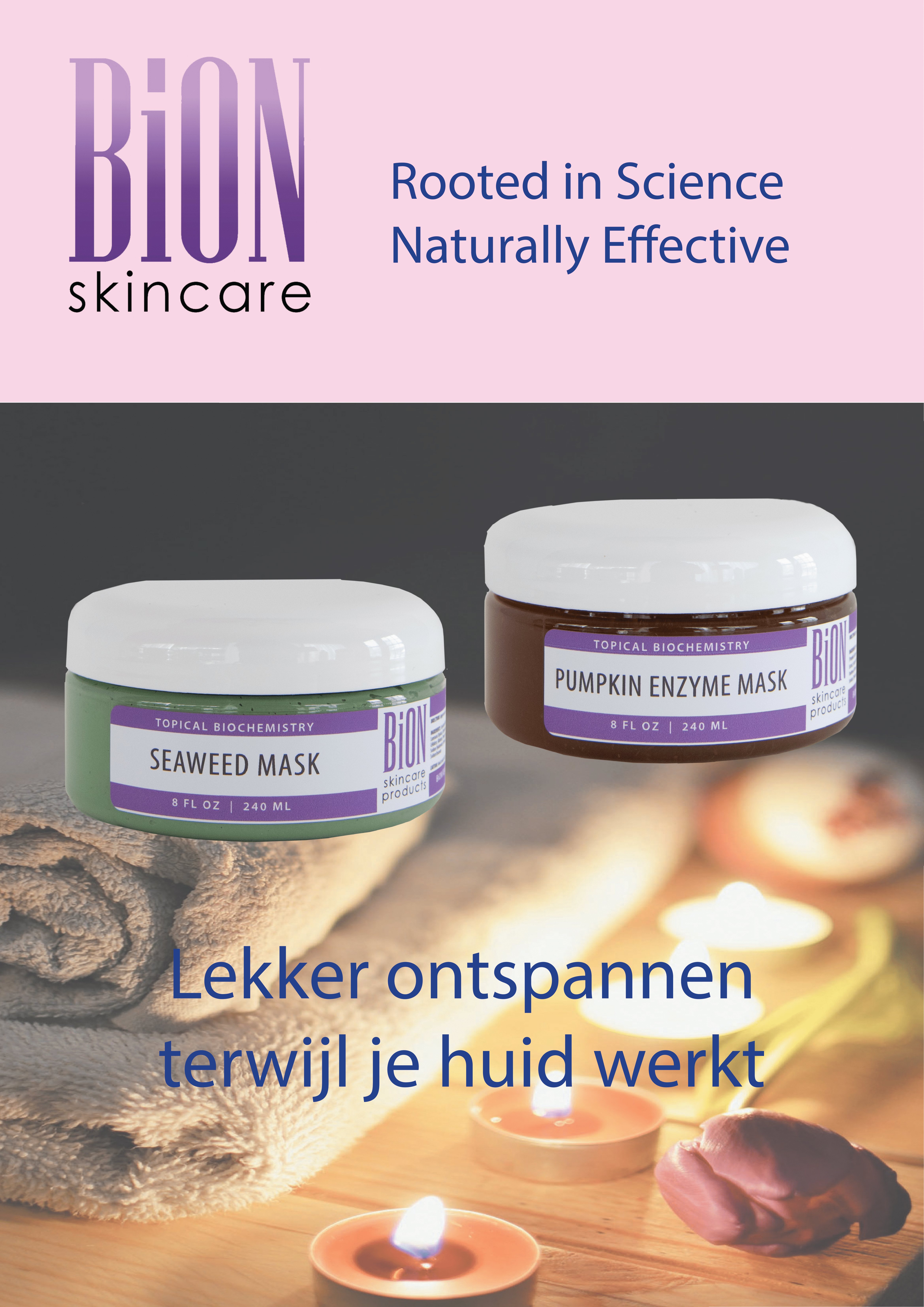 Elk BiON huidverzorgingsproduct is met de grootste zorg samengesteld om de gezondheid en het algehele uiterlijk van de huid te verbeteren. Van de acnehuid en rosaceahuid tot de rijpere huid biedt BiON de voordelen van de biochemische wetenschap door overwegend natuurlijke ingrediënten te gebruiken. De huid heeft onder andere vitamines, mineralen, eiwitten en aminozuren nodig om zijn natuurlijke functies uit te voeren. Waar mogelijk heeft BiON ervoor gekozen om deze ingrediënten in hun natuurlijke, botanische vorm te gebruiken. Natuurlijke en veilige ingrediënten zijn de basis van de producten van Bion Skincare. Bij productonderzoeken concentreert Bion zich op nieuwe ingrediënten die de beste resultaten opleveren. Ze streven ook naar innovatie; regelmatig passen ze bepaalde concentraties of samenstellingen aan aan de nieuwste wetenschappelijke inzichten.